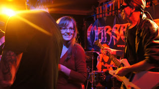 Now, first things first, the band are really good. My friends and I were by the bassist's side who was enjoying a bit of banter with us in between songs. When it came to their encore, whilst the singer and Neil were talking to the audience, the bassist turned to me and said "Do you want to come and sing with us?" I thought he was joking but it would seem that the members of the band each pick someone (i.e. a girl) to join them onstage and sing the chorus of the encore. So I ended up singing with Neil Buchanan's band. Here I am onstage with them: